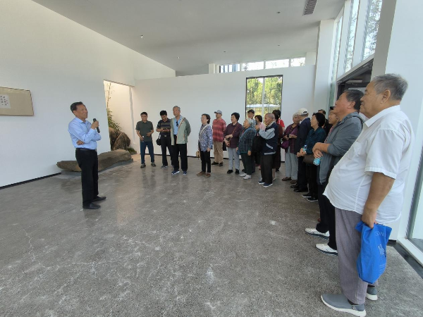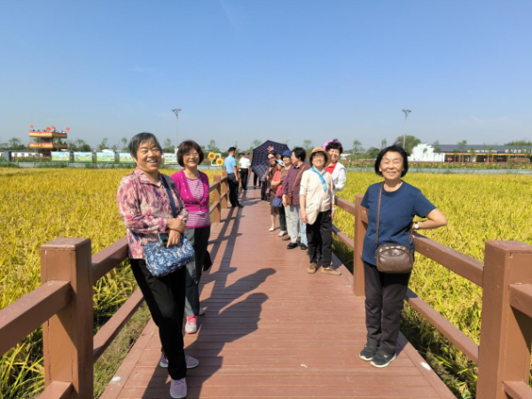 在天津国际水稻研究院,老同志们了解了小站稻发展脉络和近年来小站稻振兴发展情况,饶有兴趣地参观了展示区30个水稻新品种。老同志们登上观景台,远眺“以稻为笔、以田为卷”的特色稻田画,实地感受天津现代化农业发展的丰硕成果和乡村振兴的巨大成就,共赴金秋憧憬。