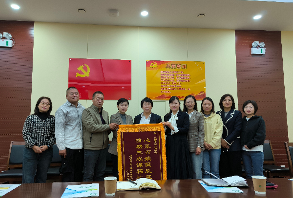 近日,为感谢我院“巾帼科技助农直通车”活动为蓟州区出头岭镇朱官屯村产业发展提供的技术支持,朱官屯村党支部书记梁艳梅带领村“两委”班子成员到我院座谈交流并赠送锦旗。院妇联、营养所、林果所相关负责同志和院相关研究所专家代表参加座谈。