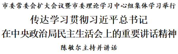 会议指出,中央政治局民主生活会为全党作出了表率、树立了标杆。习近平总书记在中央政治局民主生活会上的重要讲话,既有殷殷嘱托,又有谆谆教诲,既讲认识论,又讲方法论,是一堂生动深刻的党课,为以伟大自我革命引领伟大社会革命提供了重要指引,具有很强的政治性、思想性、针对性、指导性。要认真学习领会、主动对标对表习近平总书记重要讲话精神,贯穿落实到筹备开好市委常委会民主生活会中,贯穿落实到各就各位、履职尽责的实践中,贯穿落实到务实担当谋划部署推动当前和今后五年的工作中,贯穿落实到加强领导干部党性修养和党性锻炼中,融会贯通、知行合一,切实做到真学真懂真信真用。
