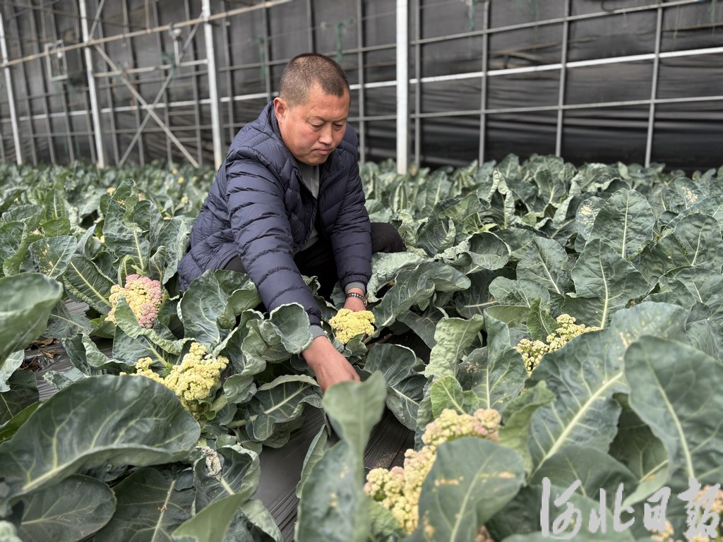1月5日,武强县街关镇武绿种植专业合作社理事长李敬权正在大棚里查看花椰菜的长势。河北日报记者李巍摄