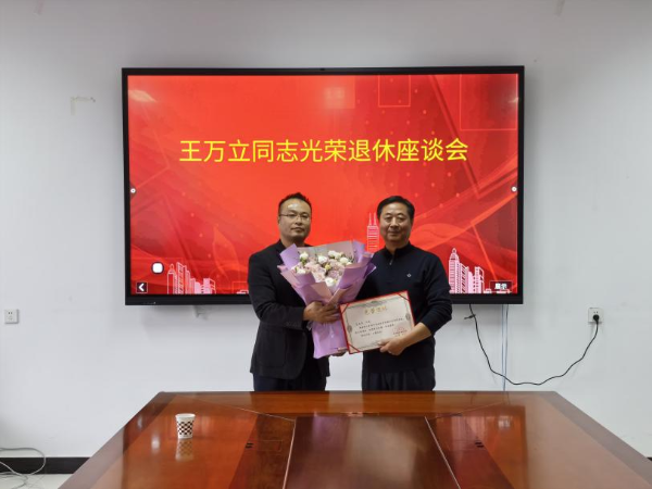 座谈会上,所领导向王万立颁发“光荣退休”荣誉证书,敬献鲜花,并代表全体职工致以祝福,对其38年来为植保所作出的突出贡献予以充分肯定和衷心感谢。