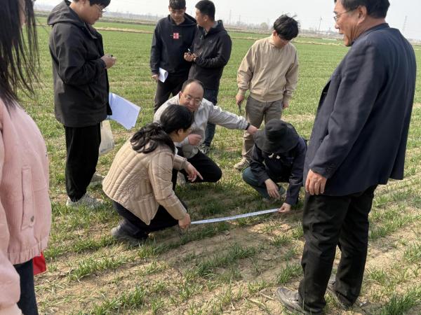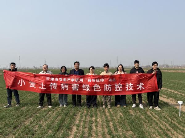 我院植保所正高级农艺师杨秀荣、天津市农业发展服务中心植保植检部高级农艺师王丽、武清区农业发展服务中心植保部推广研究员杨红军及天津保农仓农业科技有限公司技术经理付立志等在现场一同查看了小麦生长情况,并交流了相关防控技术。