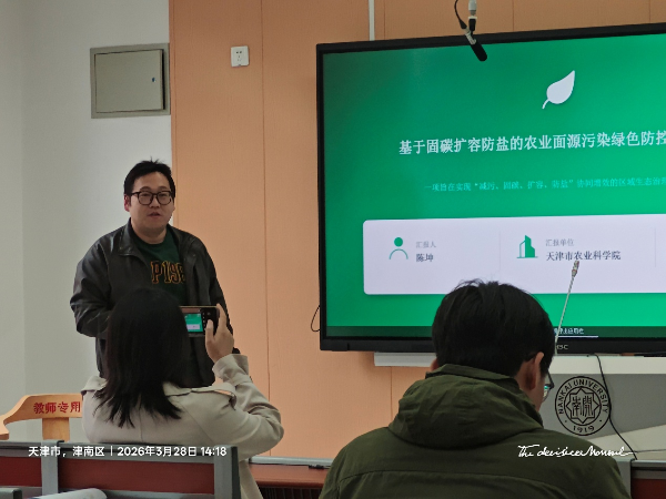 陈坤在第四分会场“土壤新污染物的环境过程与效应”作了题为《基于固碳扩容防盐的农业面源污染绿色防控技术研究》的主题报告,聚焦天津滨海地区农业面源污染防控的关键技术瓶颈,详细介绍了固碳扩容防盐协同的绿色防控技术体系,分享了我院在农业面源污染治理、耕地固碳增汇领域的创新突破,相关研究成果得到了与会专家的广泛关注与深入交流。陈坤还主持了该分会场下半场学术议程。