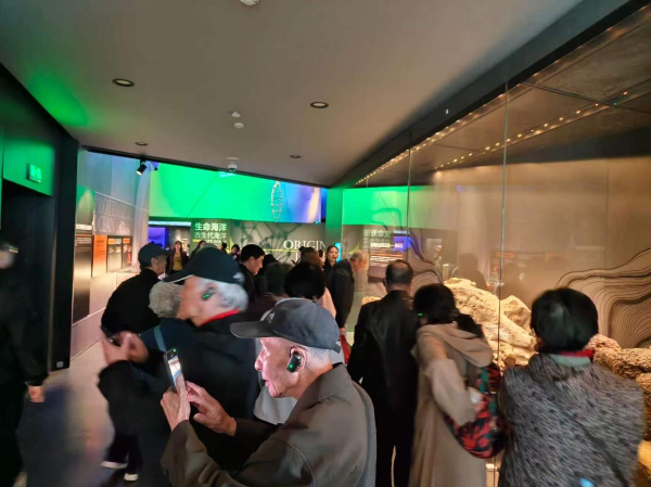 走进馆内,时光瞬间倒流数亿年。“远古海洋”展厅里,叠层石静静诉说着地球生命的起源,三叶虫化石镌刻着寒武纪的繁荣,4亿岁的鹦鹉螺依旧带着精巧的螺旋纹路。看着这些“活化石”,忽然觉得我们的岁月不过是沧海一粟,而这些生命却在海洋里延续了亿万年,这种跨越时空的相遇,简直是太奇妙了。
